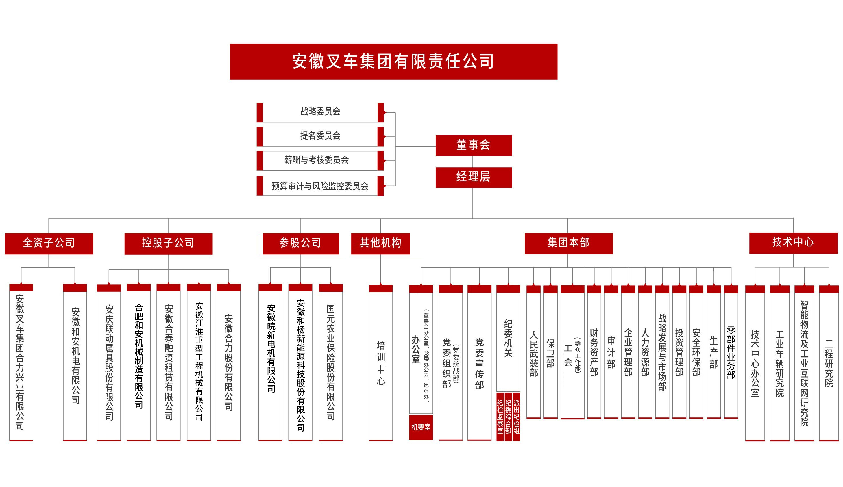 安徽叉車集團有限責任公司(以下簡稱“叉車集團”)系安徽省屬國有獨資公司,其前身為合肥礦機廠新廠,始建于1958年,1992年以合肥叉車總廠為核心組建叉車集團。